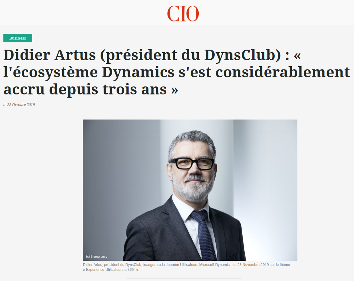 Le DynsClub organise le 28 Novembre 2019 sa Journée Utilisateurs, cette année sur le thème « Expérience Utilisateurs à 365° ». A cette occasion, CIO Online a interrogé Didier Artus, son président, sur les enjeux actuels pour les utilisateurs des Progiciels Microsoft Dynamics ainsi que des outils associés de plus en plus nombreux et interconnectés._