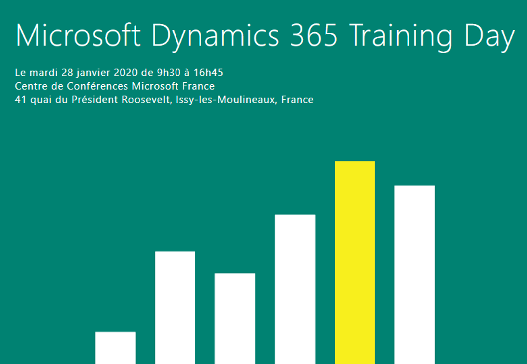 Rendez-vous le mardi 28 janvier 2020 de 9h30 à 16h45, au Centre de Conférences Microsoft France à Issy-les-Moulineaux. Participez au Microsoft Dynamics 365 Training Day et Découvrez l’avenir des applications métier et immergez-vous au sein de Dynamics 365 lors d’une journée consacrée à l’ERP.